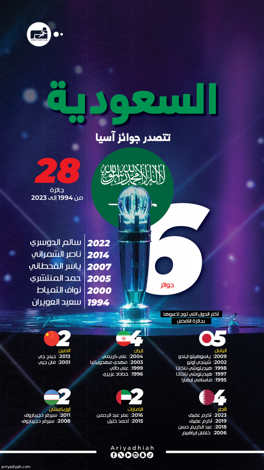 من الرياض.. «الآسيوي» يوزع 20 جائزة.. والسعودية تحصد 2