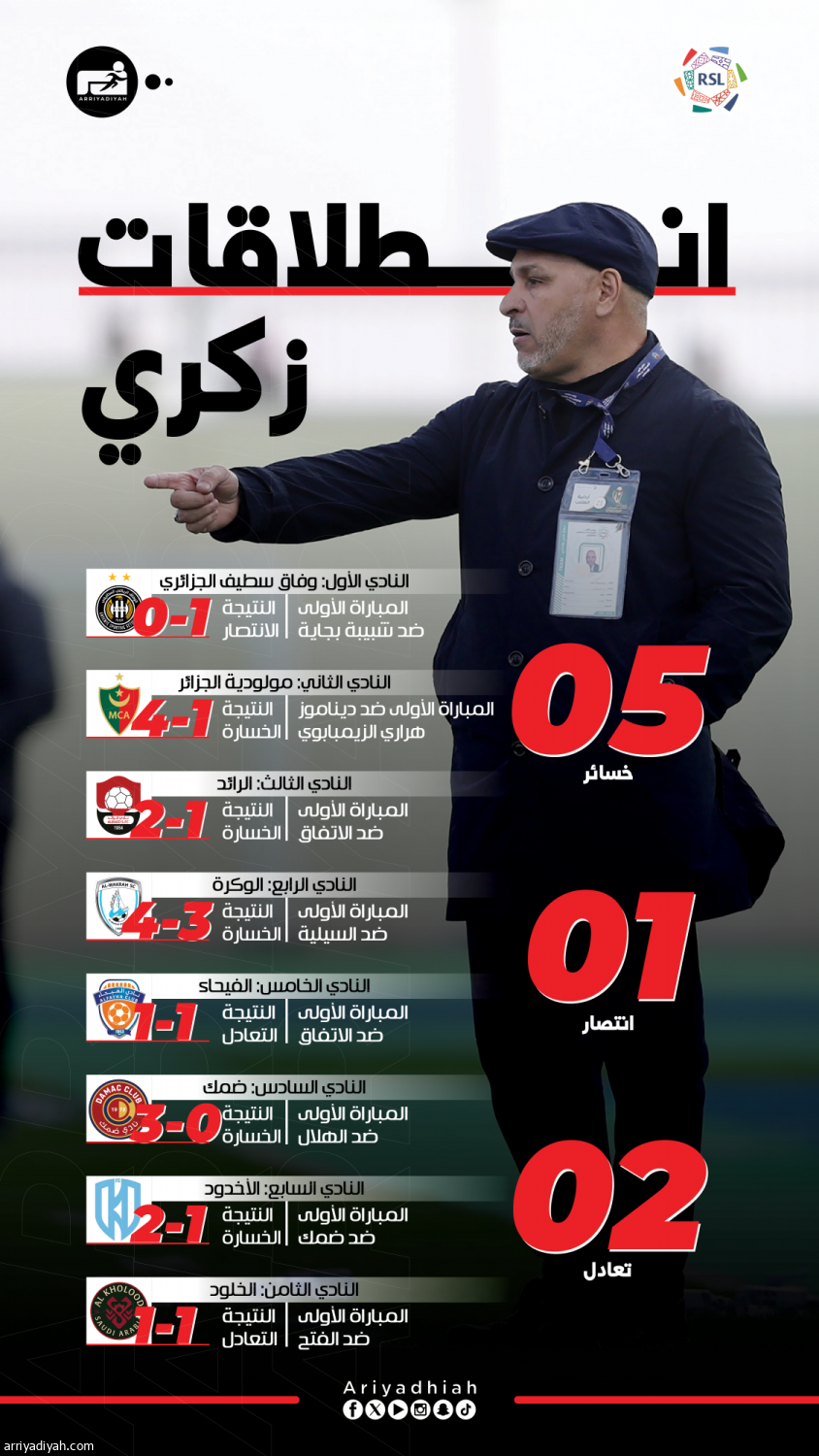 انطلاقات زكري.. 3 انتصارات ومثلها خسائر وتعادل