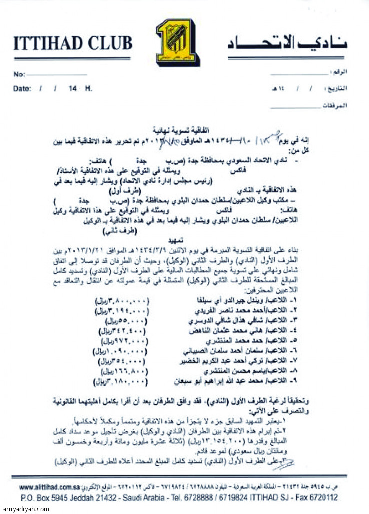 أود أن أوضح للجنة الاحتراف بأن ما ذكره نادي الاتحاد في الفقرات 4321 في خطابه لا يتوافق ومخالف مع ما هو مكتوب في الاتفاقيات...