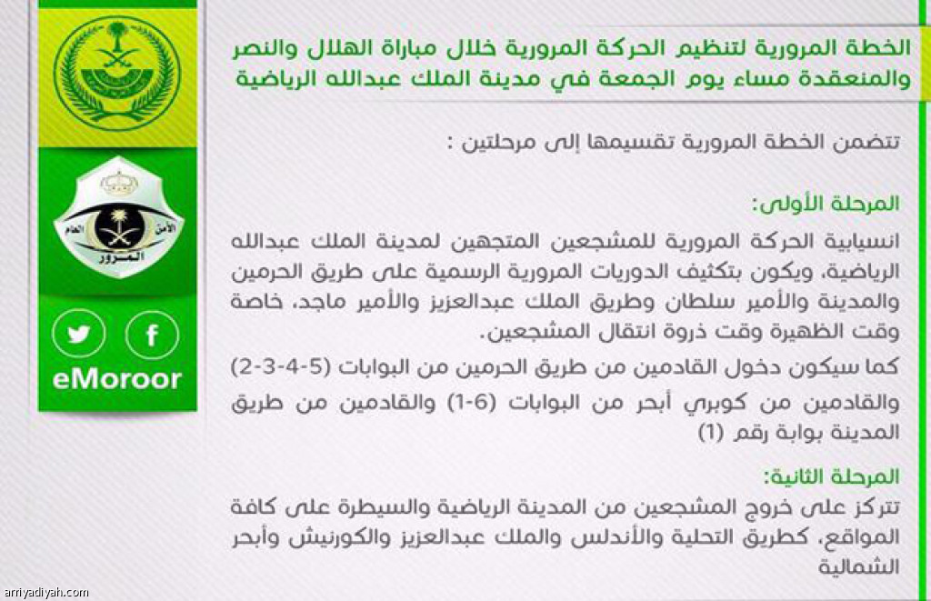 مرور جدة يعلن خطة النهائي