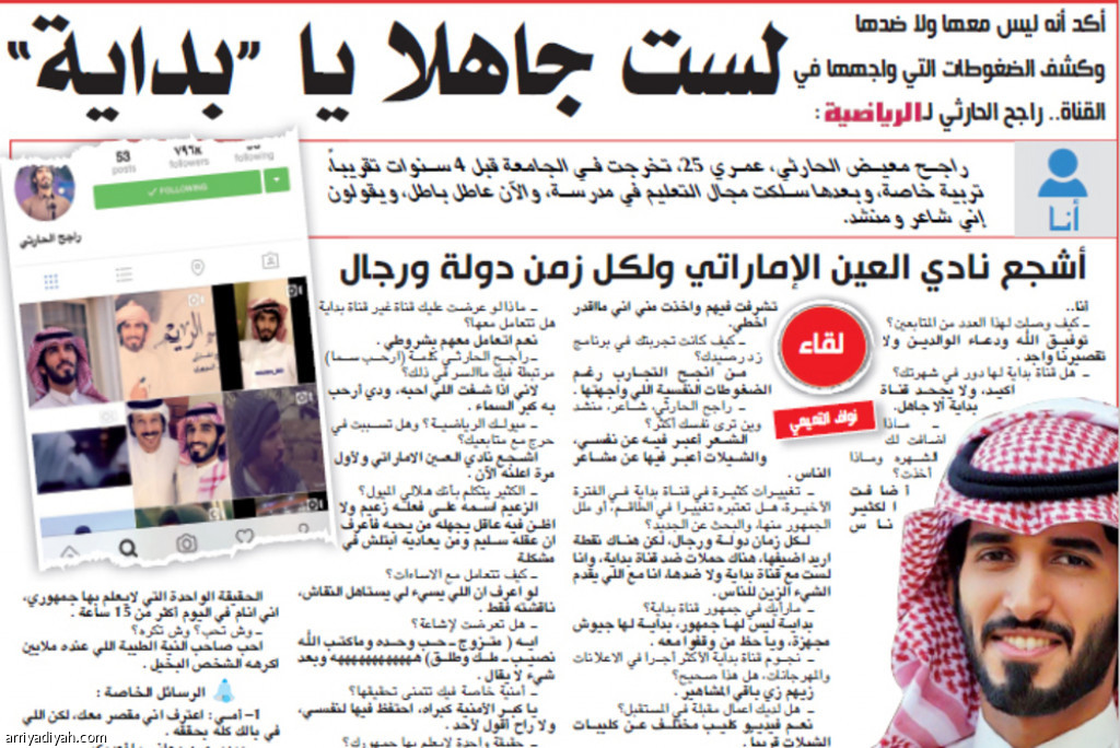 نعم اتعامل معهم بشروطي .ـ راجح الحارثي كلمة (ارحب سما) مرتبطة فيك ماالسر في ذلك؟