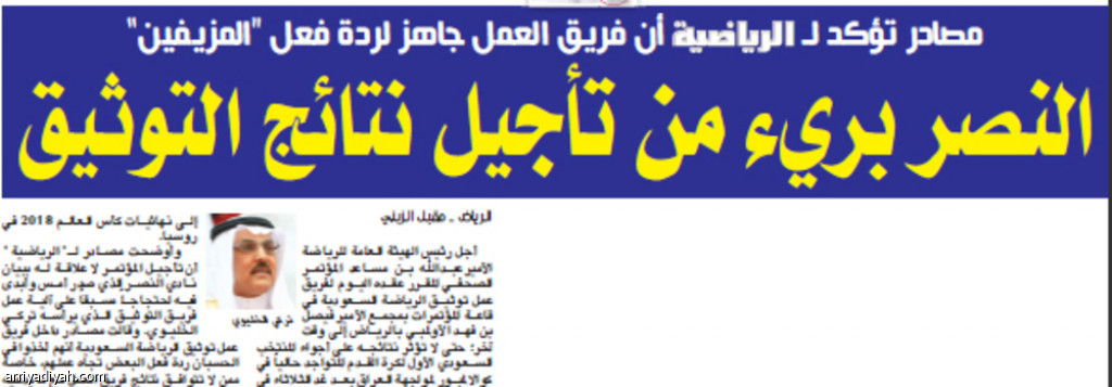 وأوضحت مصادر لـ"الرياضية" أن تأجيل المؤتمر لا علاقة له ببيان نادي النصر الذي صدر أمس وأبدى فيه احتجاجاً مسبقاً على آلية عمل فريق التوثيق الذي يرأسه تركي الخليوي. وقالت مصادر داخل فريق عمل توثيق الرياضة السعودية أنهم أخذوا في الحسبان ردة فعل البعض تجاه عملهم، خاصة ممن لا تتوافق نتائج فريق العمل مع ما يدعيه من بطولات.