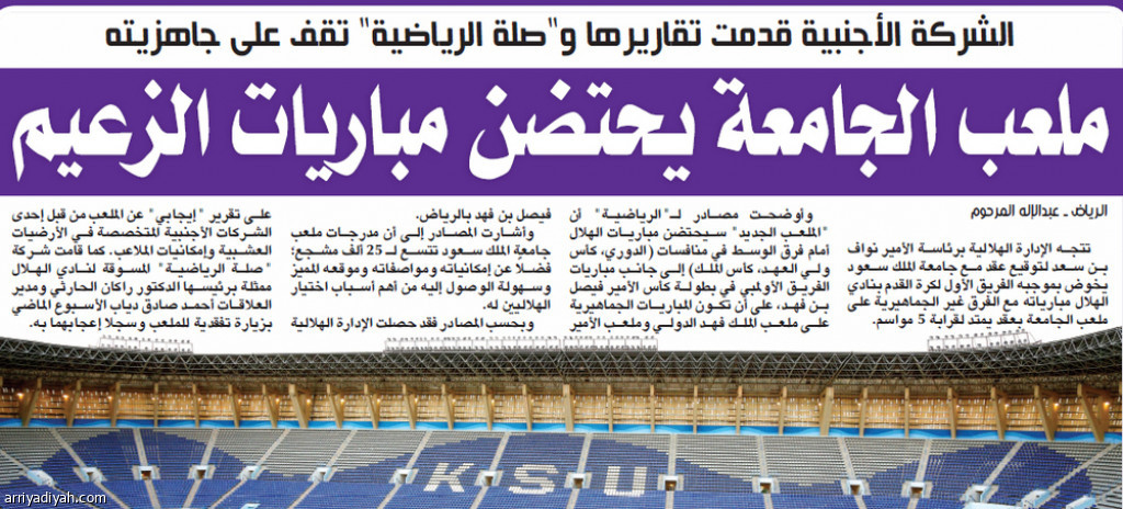 وأشارت المصادر إلى أن مدرجات ملعب جامعة الملك سعود تتسع لـ ٢٥ ألف مشجع؛ فضلاً عن إمكانياته ومواصفاته وموقعه المميز وسهولة الوصول إليه من أهم أسباب اختيار الهلاليين له.