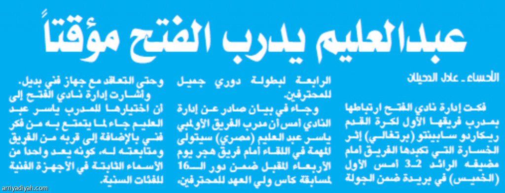 عبدالعليم يدرب الفتح مؤقتاً