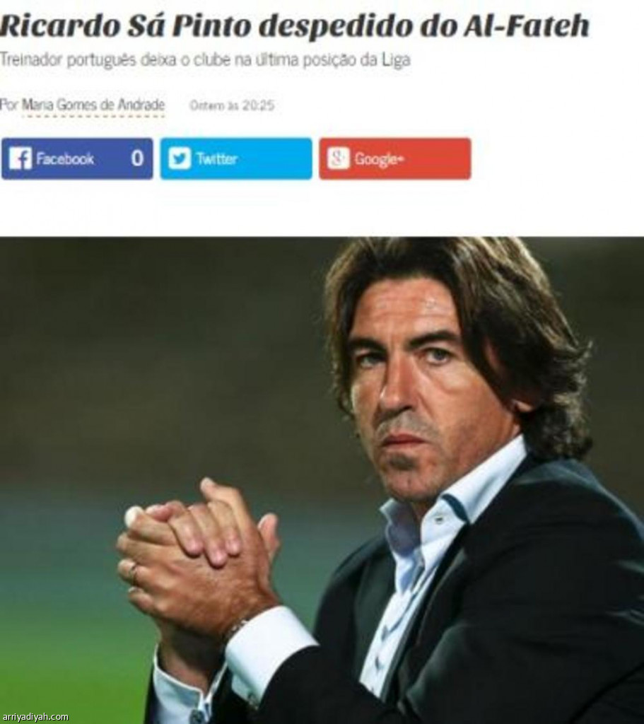 أبدت الصحف البرتغالية المختلفة اهتمامها بخبر إقالة مدربها ريكاردو سابينتو من تدريب الفتح عقب تردي نتائج الفريق بصورة ملحوظة حيث قالت أن المدرب الذي تولى المهمة مع الفريق السعودي لم يستمر لأكثر من ثلاثة أشهر حتى تمت إقالته .