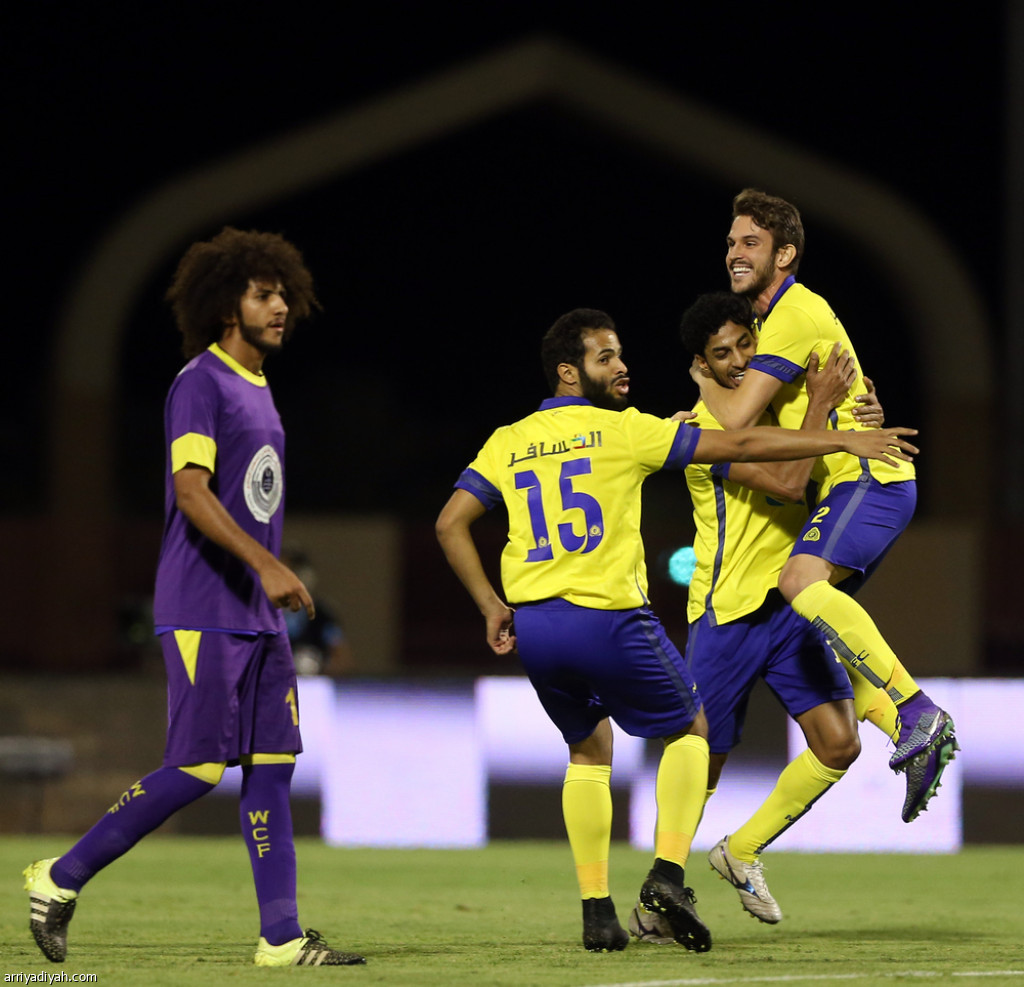 منح ثنائي الاستديو التحليلي لقنوات بروسبورت المصاحب لمواجهة الفريق الأول لكرة القدم بنادي النصر ونظيره الوطني الكابتن سامي الجوفي والمقدم فيصل الملوقي الأفضلية لفريق النصر، مؤكدين استحقاقه للانتصار وخطف التأهل لدور الثمانية من كأس ولي العهد بفضل الأهداف الثلاثة التي سجلها في شباك الوطني. وقال الجوفي :" الوطني كان يحلم بتكرار سيناريو مباراة الاتفاق في الدور الماضي من ذات المسابقة ولكنه تفاجأ بالهدف النصراوي الأول عبر اللاعب ربيع السفياني، ليحاول العودة لأجواء اللقاء لكن ألعابه اتسمت بالعشوائية ليتفاجأ بالهدف الثاني عن طريق اللاعب برونو، ورغم أن فريق الوطني عمد إلى الدفاع بعد الهدفين بأكثر عدد ممكن من المدافعين لكن دون جدوى لأن اللاعبين لم يقوموا بالضغط على حامل الكرة مما منح النصر السيطرة على كامل مجريات الشوط الأول الذي استطاع من خلاله الخروج بهدفين نظيفين ". وأضاف الجوفي:" تعجل المدرب النصراوي زوران بإخراج أحمد الفريدي فاختل وسط الملعب وفي الوقت نفسه عمد مدرب الوطني عبدالله درويش للزج بمهاجم وغير من طريقة اللعب لتصبح 4ـ4ـ2 لينجح في تسجيل هدف تقليص الفارق ولكنه طمع في المزيد وترك الدفاع مما منح النصر فرصة تسجيل الهدف الثالث عن طريق حسن الراهب. وإجمالاً فإن الوطني نجح في الظهور خلال الشوط الثاني بشكل مغاير وقاسم النصر السيطرة والخطورة لكنها لم تؤد إلى تغيير النتيجة في المحصلة النهائية للقاء ".