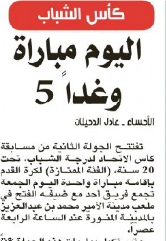 ويستقبل العدالة نظيره الهلال في الملعب الرديف بمدينة الأمير عبدالله بن جلوي الرياضية بالأحساء عند الساعة الـ 3.20 م، ويحل النصر ضيفاً على هجر في ملعب نادي هجر بالأحساء عند الساعة الـ 3.20 م، وفي الخبر يلتقي القادسية مع نظيره الشباب على ملعب نادي القادسية عند الساعة الـ 3.20 م.