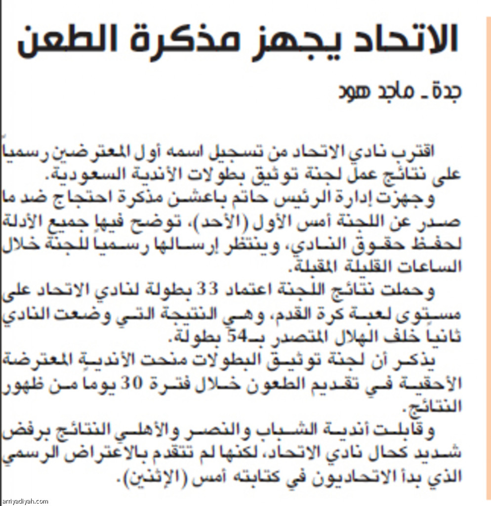 وقابلت أندية الشباب والنصر والأهلي النتائج برفض شديد كحال نادي الاتحاد، لكنها لم تتقدم بالاعتراض الرسمي الذي بدأ الاتحاديون في كتابته أمس (الإثنين).