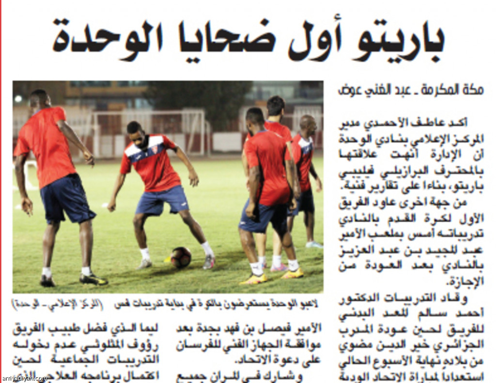 أكد عاطف الأحمدي مدير المركز الإعلامي بنادي الوحدة أن الإدارة أنهت علاقتها بالمحترف البرازيلي فيليبي باريتو، بناءا على تقارير فنية.