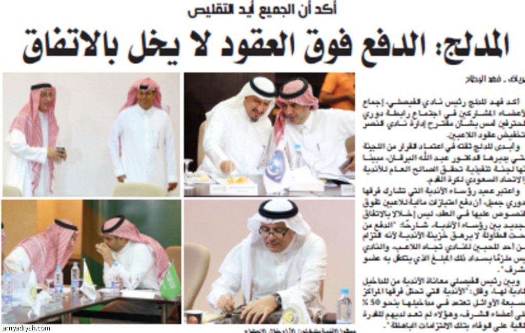 أكد فهد المدلج رئيس نادي الفيصلي، إجماع الأعضاء المشاركين في اجتماع رابطة دوري المحترفين أمس بشأن مقترح إدارة نادي النصر بتخفيض عقود اللاعبين.