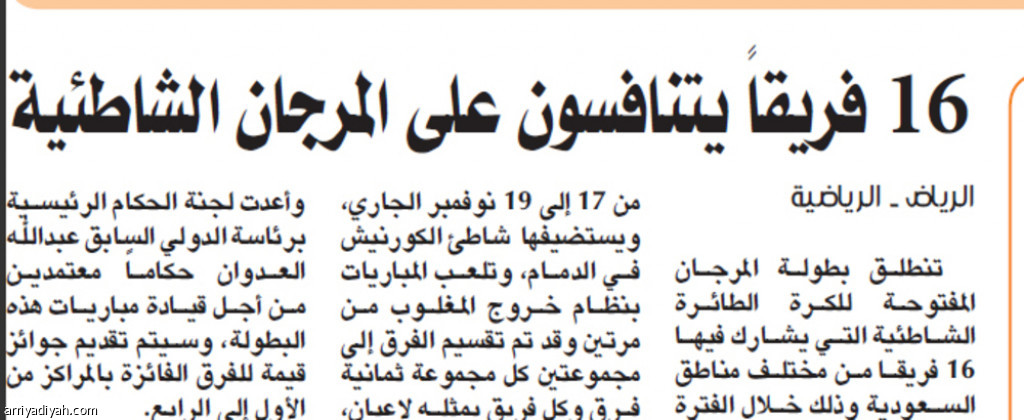 16 فريقاً يتنافسون على المرجان الشاطئية