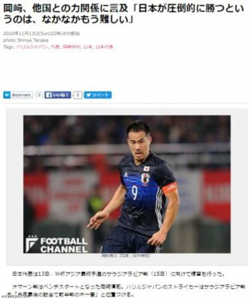 قال المهاجم الياباني شينجي أوكازاكي ، نجم فريق ليسترسيتي الإنجليزي أن الحظ وقف حائفاً أمام تسجيله للهدف الدولي رقم 50 له في مباريات الإمارات والعراق وتايلاند وأستراليا لكنه وعد جماهير بلاده في تصريحات للصحف هناك أنه سيسجل في مرمى المنتخب السعودي.