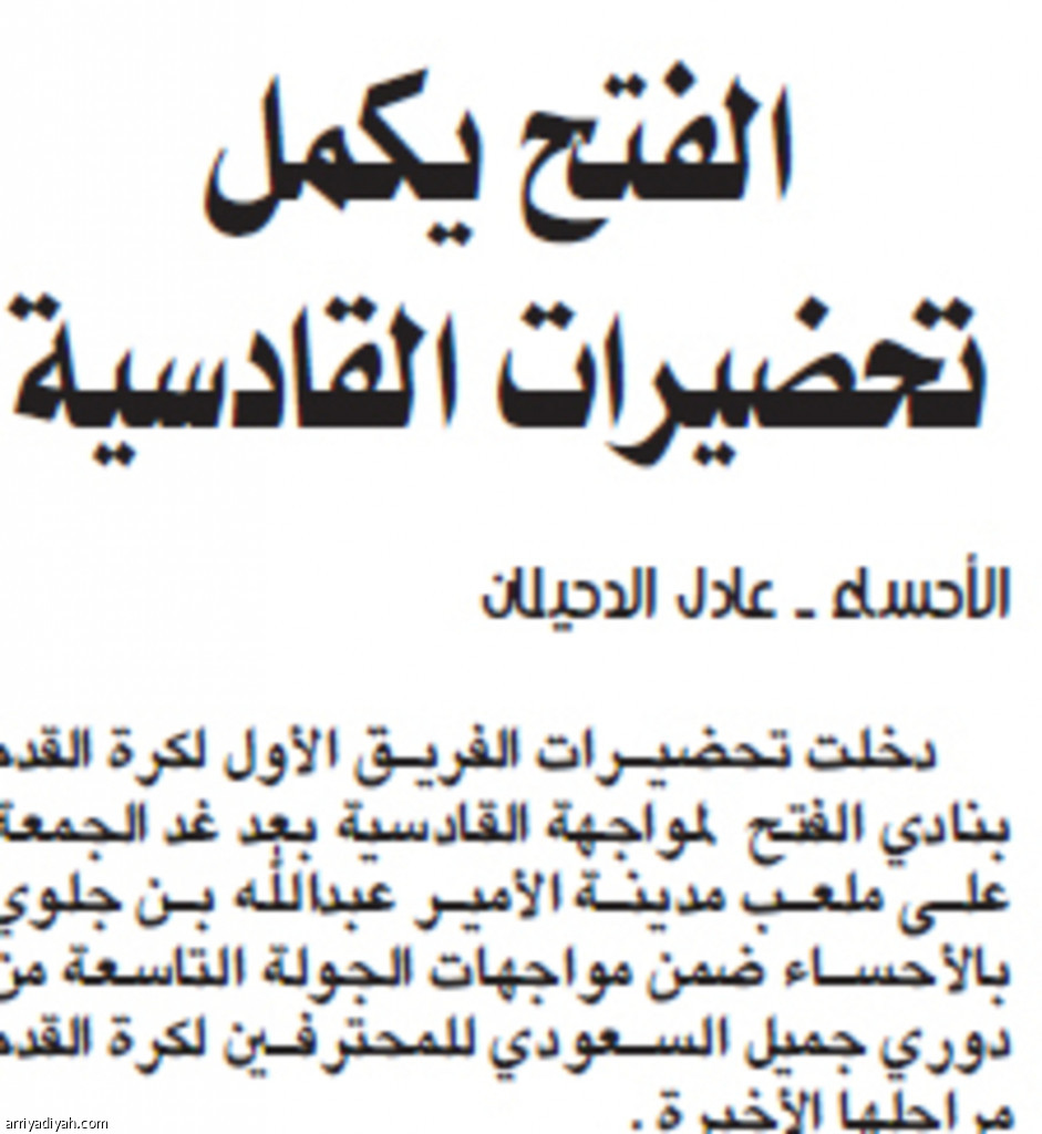 دخلت تحضيرات الفريق الأول لكرة القدم بنادي الفتح لمواجهة القادسية بعد غد الجمعة على ملعب مدينة الأمير عبدالله بن جلوي بالأحساء ضمن مواجهات الجولة التاسعة من دوري جميل السعودي للمحترفين لكرة القدم مراحلها الأخيرة .