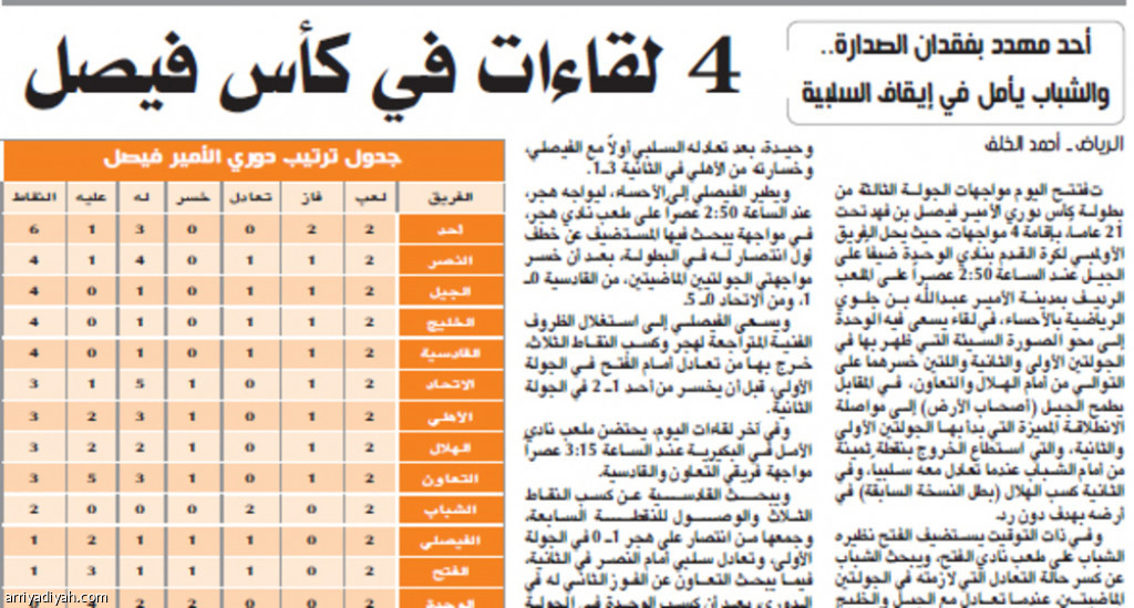 ويطير الفيصلي إلى الأحساء، ليواجه هجر، عند الساعة 2:50 عصراً على ملعب نادي هجر، في مواجهة يبحث فيها المستضيف عن خطف أول انتصار له في البطولة، بعد أن خسر مواجهتي الجولتيين الماضيتين، من القادسية 0ـ 1، ومن الاتحاد 0ـ 5.
