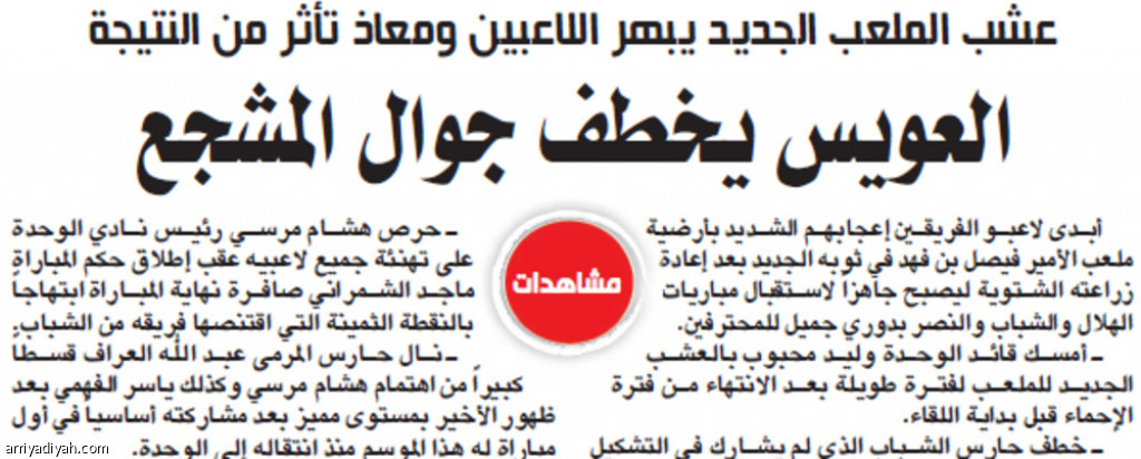 ـ نال حارس المرمى عبد الله العراف قسطاً كبيراً من اهتمام هشام مرسي وكذلك ياسر الفهمي بعد ظهور الأخير بمستوى مميز بعد مشاركته أساسياً في أول مباراة له هذا الموسم منذ انتقاله إلى الوحدة.