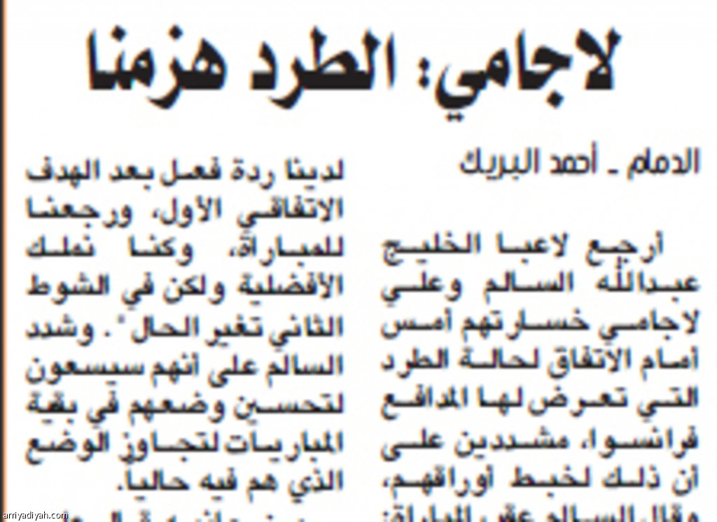 من جانبه قال علي لاجامي: "قدمنا مباراة كبيرة، ولكن الطرد أثر علينا". ونفى مدافع الخليج أن يكون لمس الكرة بيده في ركلة الجزاء التي احتسبها الحكم محمد النحيت، وطوح بها محمد الكويكبي فوق العارضة".