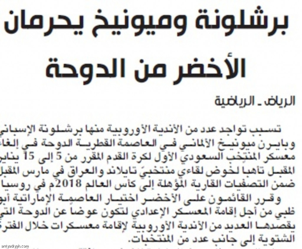 برشلونة وميونيخ يحرمان الأخضر من الدوحة
