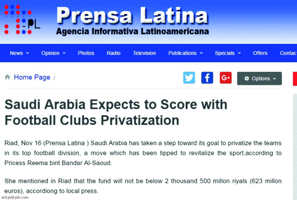 وذكر الموقع أن كرة القدم السعودية ستطبق "الاحتراف الكامل" بعد الإعلان عن تخصيص أنديتها، وقال الموقع: تخصيص الأندية طريق اللاعب السعودي للاحتراف أوروبياً.
