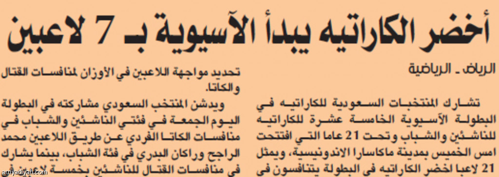 أخضر الكاراتيه يبدأ الآسيوية بـ 7 لاعبين