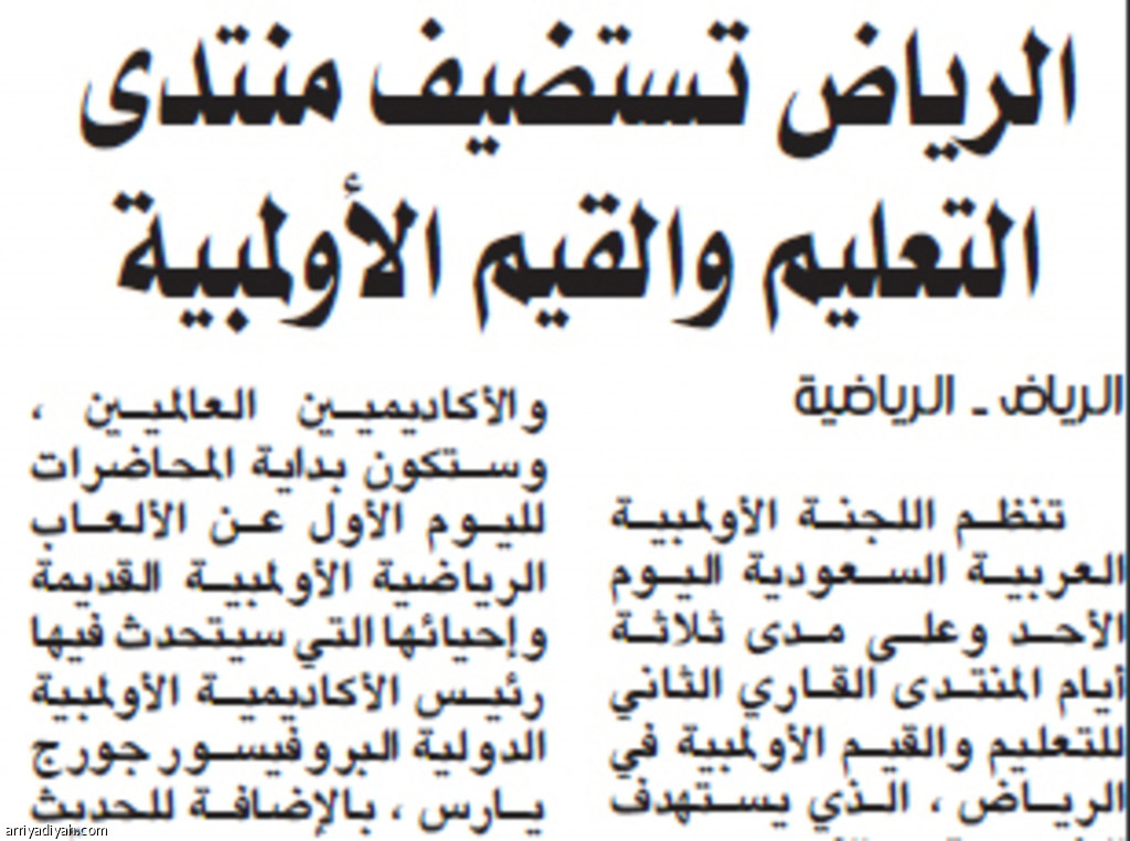الرياض تستضيف منتدى التعليم والقيم الأولمبية