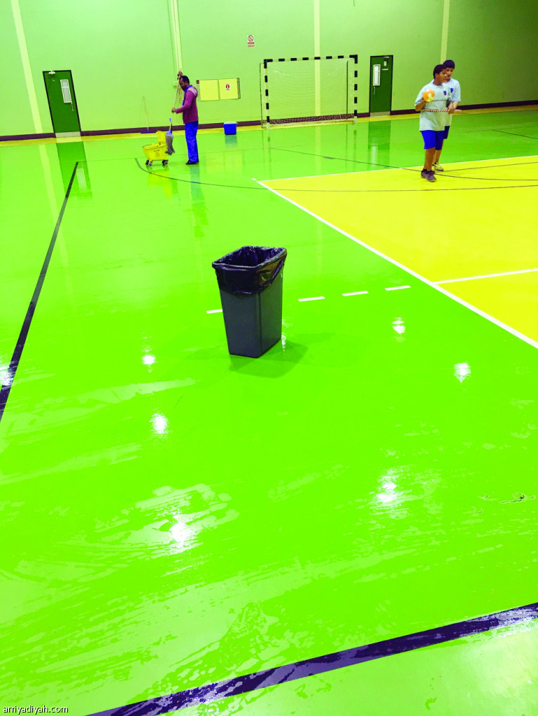 وأضاف:" سبق وخاطبنا الهيئة العامة للرياضة عدة مرات خلال السنوات الثلاث الماضية وللأسف لم نجد أي تجاوب حيث توقفت تمارين الألعاب المختلفة خلال الأيام الماضية ولأجل غير مسمى بسبب المياه التي تغمر الصالة من خلال التسريب من السقف" مشيرا إلى أن ذلك قد يتسبب في ماس كهربائي واندلاع حريق (لا سمح الله) إذا استمر إهمال الموضوع.