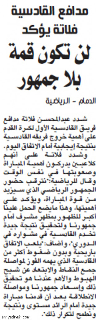 شدد عبدالمحسن فلاتة مدافع فريق القادسية الأول لكرة القدم على أهمية خروج فريقه القادسية بنتيجة إيجابية أمام الاتفاق اليوم.