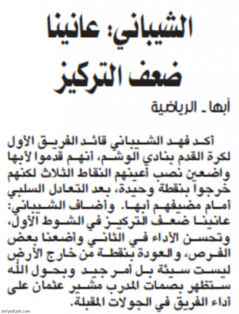 أكد فهد الشيباني قائد الفريق الأول لكرة القدم بنادي الوشم، أنهم قدموا لأبها واضعين نصب أعينهم النقاط الثلاث لكنهم خرجوا بنقطة وحيدة، بعد التعادل السلبي أمام مضيفهم أبها. وأضاف الشيباني: عانينا ضعف التركيز في الشوط الأول، وتحسن الأداء في الثاني وأضعنا بعض الفرص، والعودة بنقطة من خارج الأرض ليست سيئة بل أمر جيد وبحول الله ستظهر بصمات المدرب مشير عثمان على أداء الفريق في الجولات المقبلة.