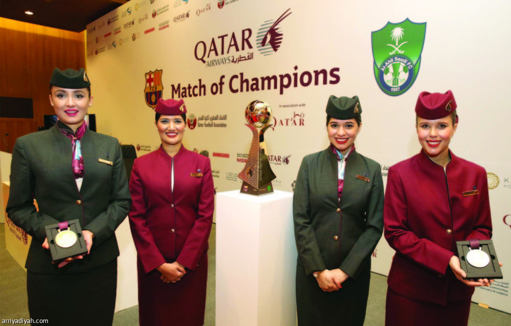 تم مساء أمس كشف النقاب عن كأس الخطوط الجوية القطرية للمرة الأولى حيث صُممت الكأس من قبل فريق الخطوط الجوية القطرية، وهي مستوحاة من طائرة حديثة تسيرها الشركة، حيث صنعت يدوياً في الدوحة من الذهب الخالص عيار 18 قيراطاً.