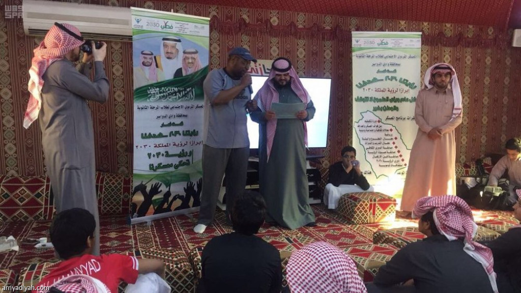نظمــت إدارة التعليـــم بمحافظـة وادي الدواســر، المعسكر التربوي 2030 الذي أقامه النشـاط الاجتماعــي بــالإدارة، وشارك فيه 100 طالب من المرحلتين المتوسطة والثانوية بمقر نادي الحي بالخماسين.