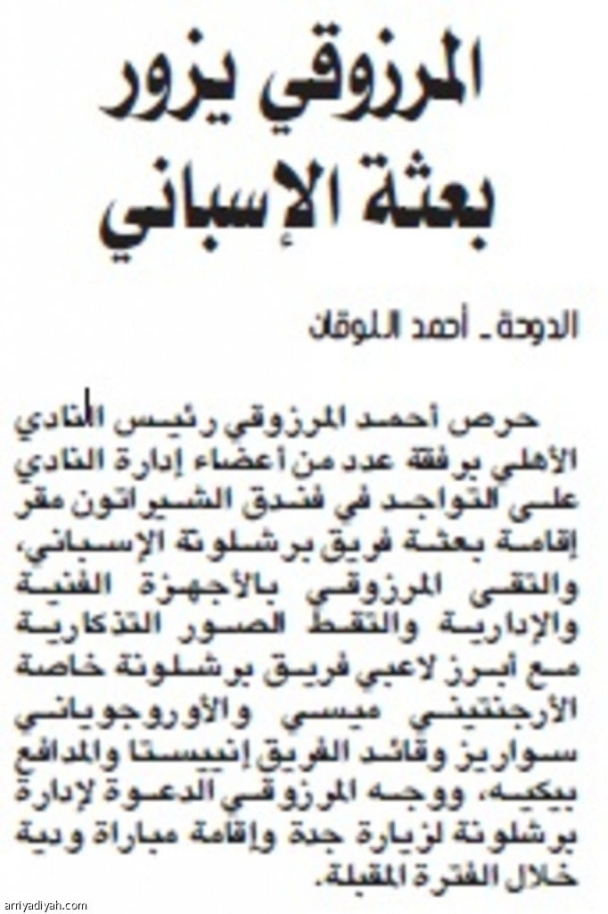 حرص أحمد المرزوقي رئيس النادي الأهلي برفقة عدد من أعضاء إدارة النادي على التواجد في فندق الشيراتون مقر إقامة بعثة فريق برشلونة الإسباني، والتقى المرزوقي بالأجهزة الفنية والإدارية والتقط الصور التذكارية مع أبرز لاعبي فريق برشلونة خاصة الأرجنتيني ميسي والأوروجوياني سواريز وقائد الفريق إنييستا والمدافع بيكيه، ووجه المرزوقي الدعوة لإدارة برشلونة لزيارة جدة وإقامة مباراة ودية خلال الفترة المقبلة.
