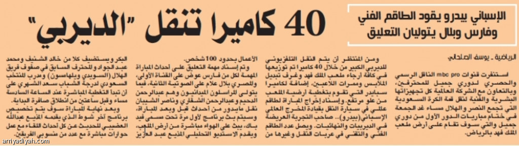 40 كاميرا تنقل “الديربي”