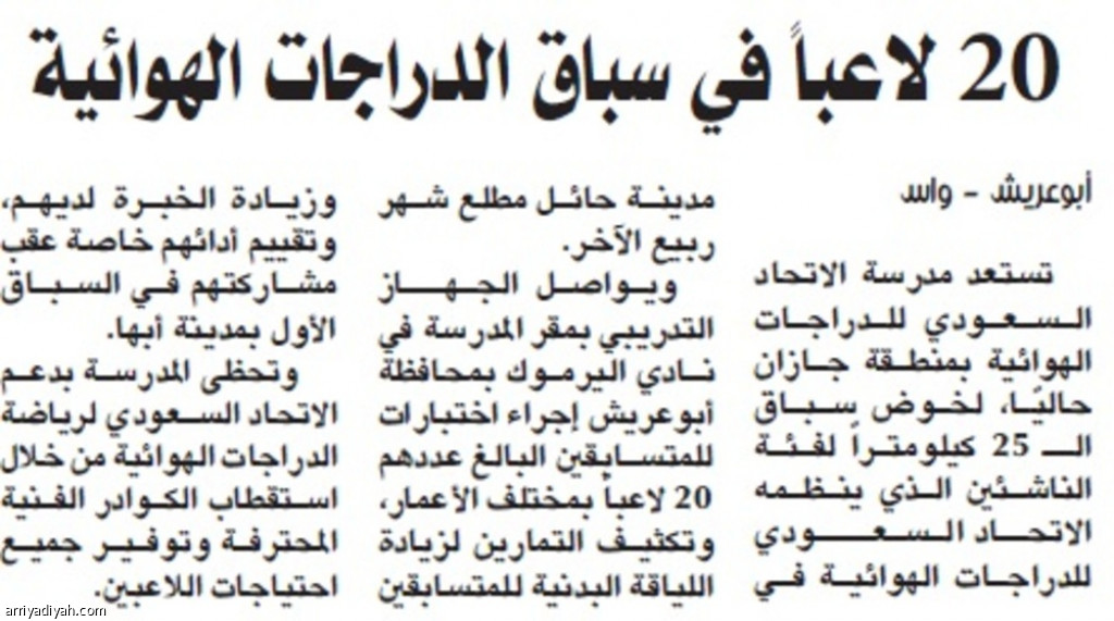 تستعد مدرسة الاتحاد الـسعـودي للـدراجات الهوائية بمنطـقة جـازان حاليًا، لخوض سبـاق الـ 25 كيلومتراً لفـئة الناشئين الذي ينـظـمه الاتحـاد الـسعــــودي للدراجات الهوائية في مدينة حائل مطلع شهر ربيع الآخر.