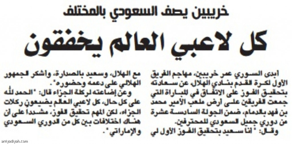أبدى السوري عمر خريبين، مهاجم الفريق الأول لكرة القدم بنادي الهلال، عن سعادته بتحقيق الفوز على الاتفاق في المباراة التي جمعت الفريقين على أرض ملعب الأمير محمد بن فهد بالدمام، ضمن الجولة السادسة عشرة من دوري جميل السعودي للمحترفين.