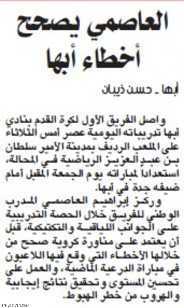 واصل الفريق الأول لكرة القدم بنادي أبها تدريباته اليومية عصر أمس الثلاثاء على الملعب الرديف بمدينة الأمير سلطان بن عبد العزيز الرياضية في المحالة، استعداداً لمباراته يوم الجمعة المقبل أمام ضيفه جدة في أبها.
