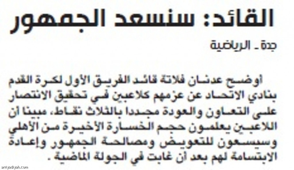 أوضح عدنان فلاتة قائد الفريق الأول لكرة القدم بنادي الاتحاد عن عزمهم كلاعبين في تحقيق الانتصار على التعاون والعودة مجددا بالثلاث نقاط، مبينا أن اللاعبين يعلمون حجم الخسارة الأخيرة من الأهلي وسيسعون للتعويض ومصالحة الجمهور وإعادة الابتسامة لهم بعد أن غابت في الجولة الماضية .