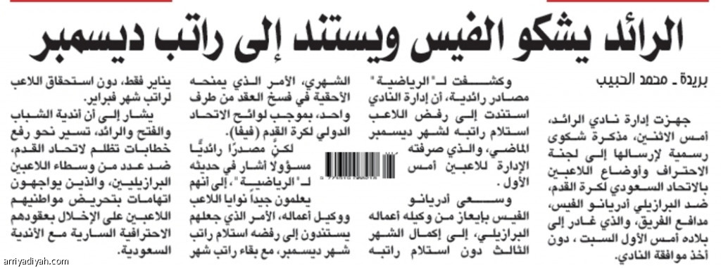 الرائد يشكو الفيس ويستند إلى راتب ديسمبر