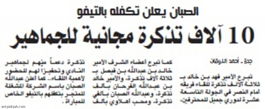 تبرع الأمير فهد بن خالد بـ ثلاثة آلالف تذكرة للقاء فريقه أمام النصر في الجولة التاسعة عشرة لدوري جميل للمحترفين، كما تبرع أعضاء الشرف الأمير خالد بن عبدالله بن فيصل بـ ثلاثة آلاف تذكرة، والأمير خالد بن عبدالله الفرحان بـألف تذكرة، وعبدالله الصبان بـألفي تذكرة، ومحب أهلاوي بألف تذكرة دعماً منهم لجماهير النادي وتحفيزاً لهم للحضور لأهمية اللقاء.. كما أعلن عبدالله الصبان باسم الشركة المشغلة للمتجر بتكفلهم بالتيفو الخاص للمباراة .