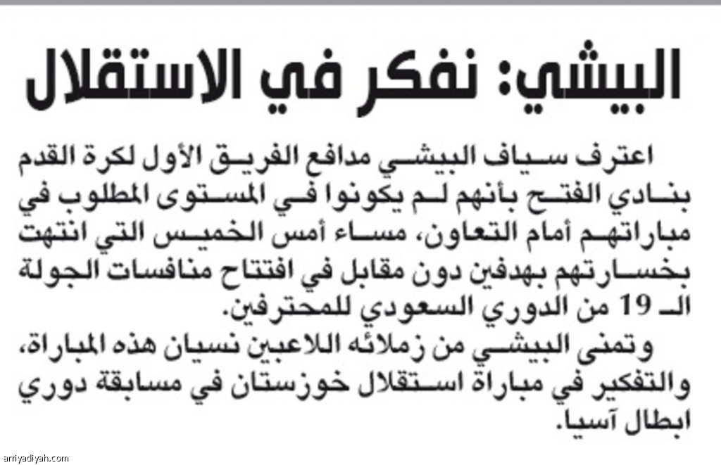 وتمنى البيشي من زملائه اللاعبين نسيان هذه المباراة، والتفكير في مباراة استقلال خوزستان في مسابقة دوري ابطال آسيا.