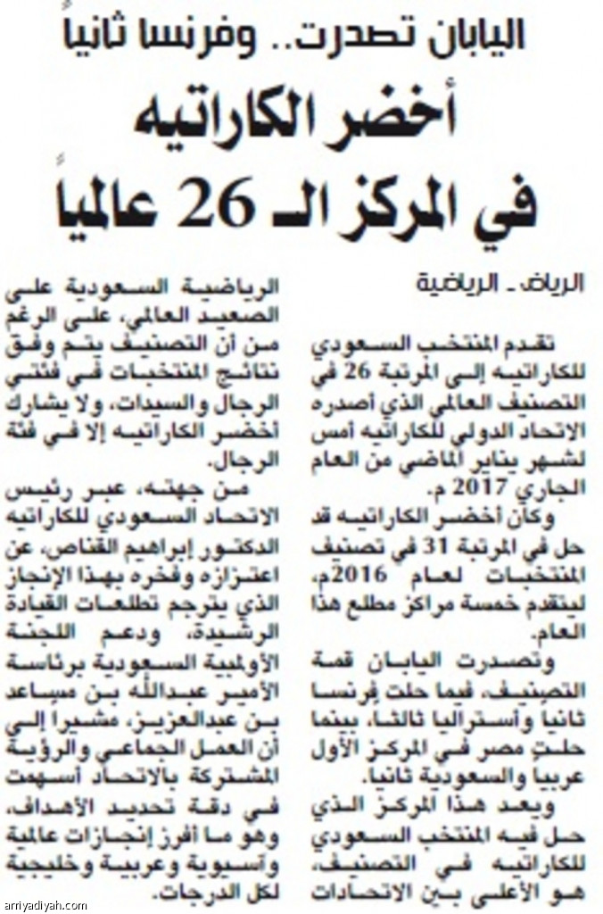 أخضر الكاراتيه في المركز الـ 26 عالمياً