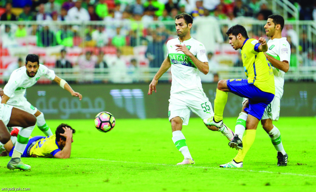 قفز الفريق الأول لكرة القدم بنادي النصر إلى المركز الثاني بفوزه أمس على مضيفه الأهلي بهدفين دون رد في المباراة التي جمعت الفريقين أمس في ملعب الجوهرة بجدة أمام 38 ألف متفرج، ليتراجع الأهلي إلى المركز الثالث مؤقتاً وينتظر الفريقان نتيجة مباراة الاتحاد والشباب اليوم والتي ستحدد نتيجتها ترتيب الفرق الثلاثة (النصر والأهلي والاتحاد) مع نهاية الجولة الـ 19.