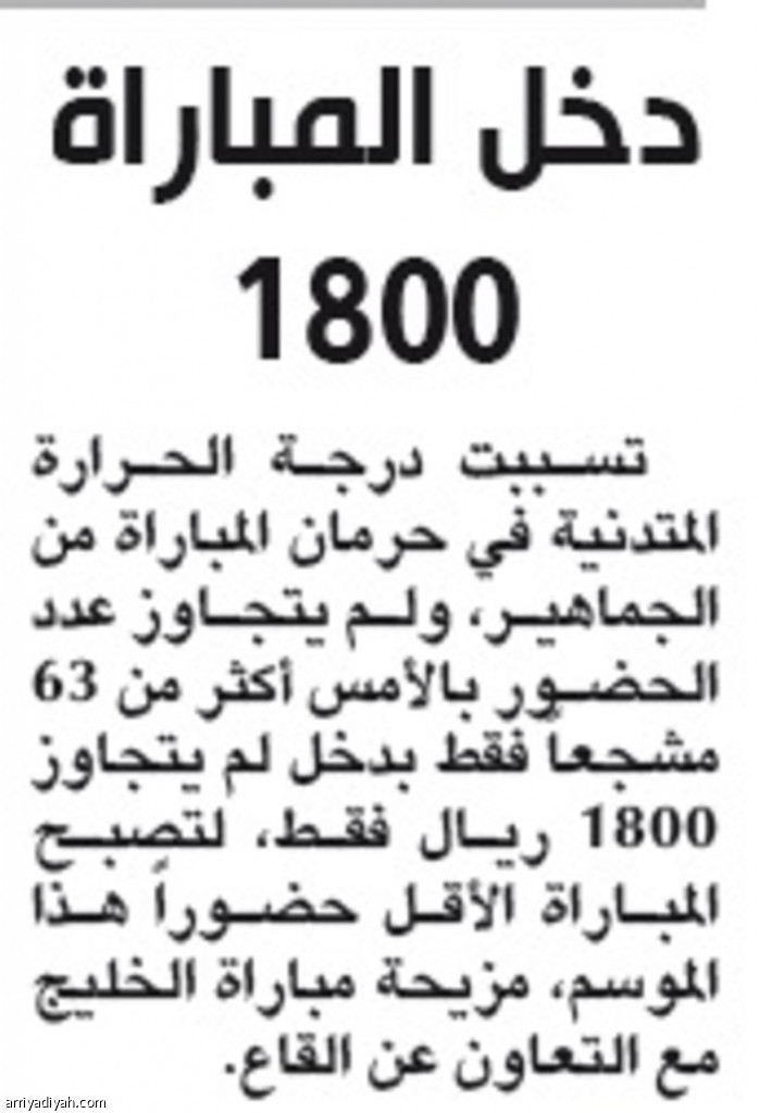 تسببت درجة الحرارة المتدنية في حرمان المباراة من الجماهير، ولم يتجاوز عدد الحضور بالأمس أكثر من ٦٣ مشجعاً فقط بدخل لم يتجاوز ١٨٠٠ ريال فقط، لتصبح المباراة الأقل حضوراً هذا الموسم، مزيحة مباراة الخليج مع التعاون عن القاع.