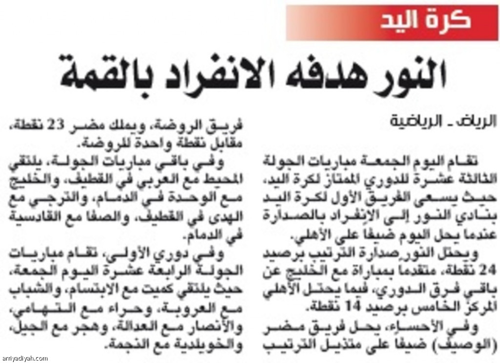 النور هدفه الانفراد بالقمة