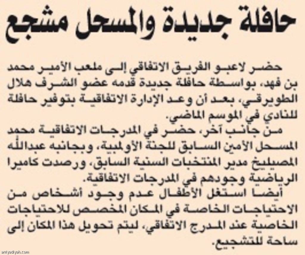 حضر لاعبو الفريق الاتفاقي إلى ملعب الأمير محمد بن فهد، بواسطة حافلة جديدة قدمه عضو الشرف هلال الطويرقي، بعد أن وعد الإدارة الاتفاقية بتوفير حافلة للنادي في الموسم الماضي.