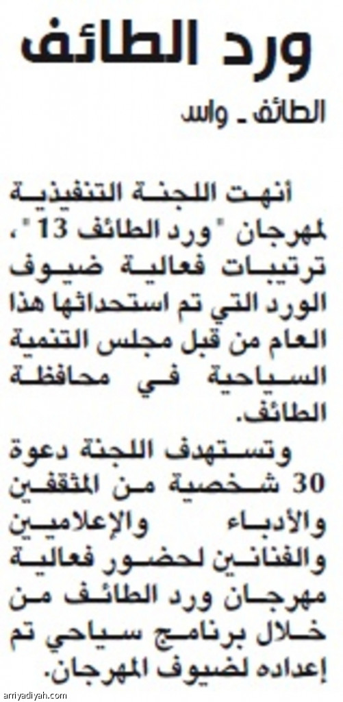 أنهت اللجنة التنفيذية لمهرجان "ورد الطائف 13"، ترتيبات فعالية ضيوف الورد التي تم استحداثها هذا العام من قبل مجلس التنمية السياحية في محافظة الطائف.