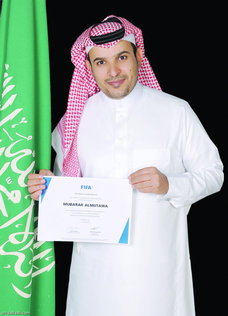 حصل الدكتور مبارك المطوع ممثل السعودية لمركز التميز الطبي لفيفا بدبي على شهادة دبلوم الطب الرياضي للاعبي كرة القدم والمعتمدة من الاتحاد الدولي لكرة القدم "فيفا".