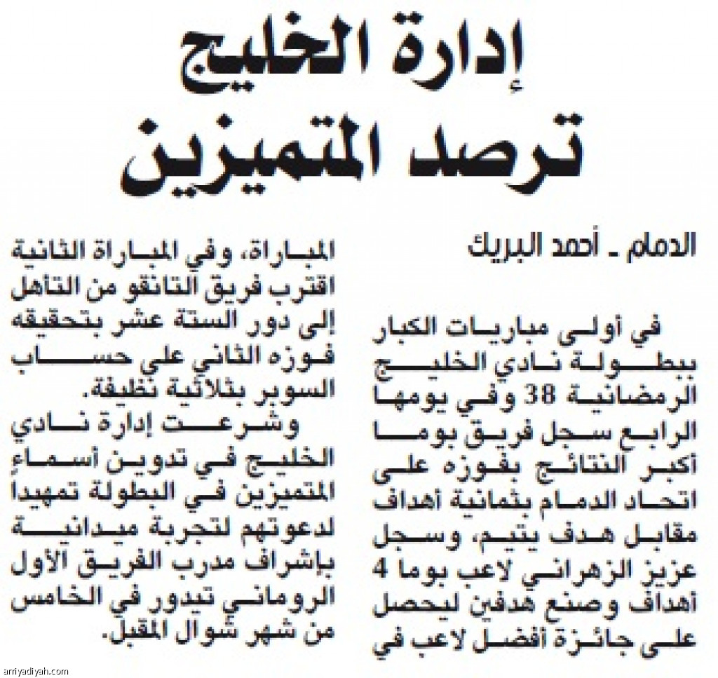 وشرعـــت إدارة نــادي الخليج في تدوين أسمـاء المتميزين في البطولة تمهيداً لدعوتهم لتجربة ميـدانيـــة بإشراف مدرب الفريـق الأول الروماني تيدور في الخامس من شهر شوال المقبل.