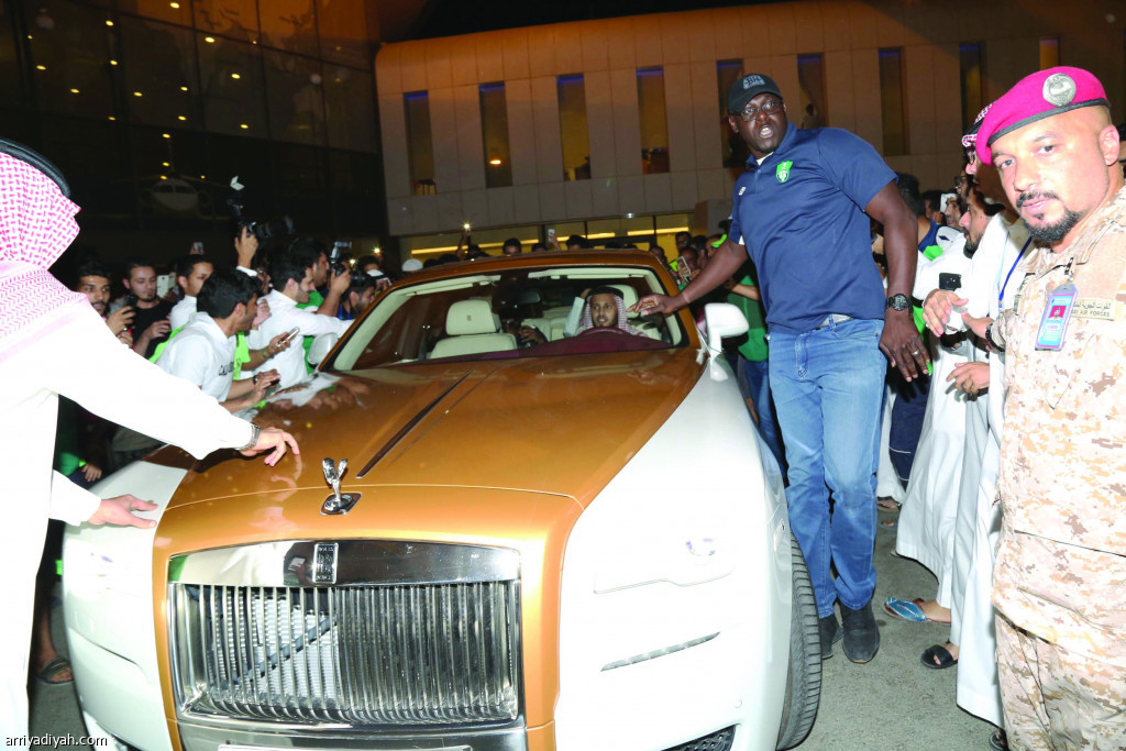 وكان في استقباله محمد سعد الدوسري مدير العلاقات العامة في النادي الأهلي وتركي الزهراني وكيل أعماله ومدير وأعضاء المركز الإعلامي في النادي وحشد كبير من الإعلاميين والجماهير التي وقفت تنتظر طويلاً قبل وصوله.