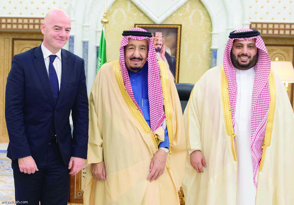 استقبل خادم الحرمين الشريفين، الملك سلمان بن عبد العزيز آل سعود ـ حفظه الله ـ في مكتبه في قصر اليمامة في الرياض أمس، جياني إنفانتينو رئيس الاتحاد الدولي لكرة القدم "فيفا".