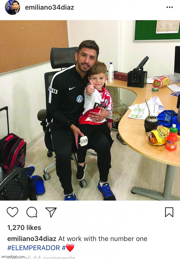 استقبلت الجماهير الهلالية تدوينة إمليانو دياز مساعد مدرب فريق الهلال الأول لكرة القدم عبر حسابه في الأنستجرام، بكثير من الفكاهة، بعد وضع صورته مع ابنه وعلق عليها قائلاً: "في العمل مع الرقم واحد".