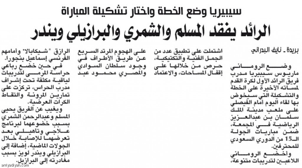 الرائد يفقد المسلم والشمري والبرازيلي ويندر